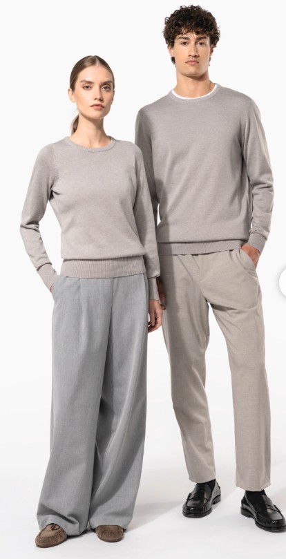 Striktrøjen har en fitted pasform, dobbelt rib i halsen og tapet nakkekant, hvilket bidrager til både komfort og holdbarhed. Modellen fås i både dame- og herreudgave, så pasformen tilpasses brugeren optimalt. Når produktet lægges i kurven, kan I nemt vælge størrelser separat til dame og herre, hvilket gør trøjen særligt velegnet til teams, messer og ensartet firmatøj.