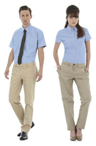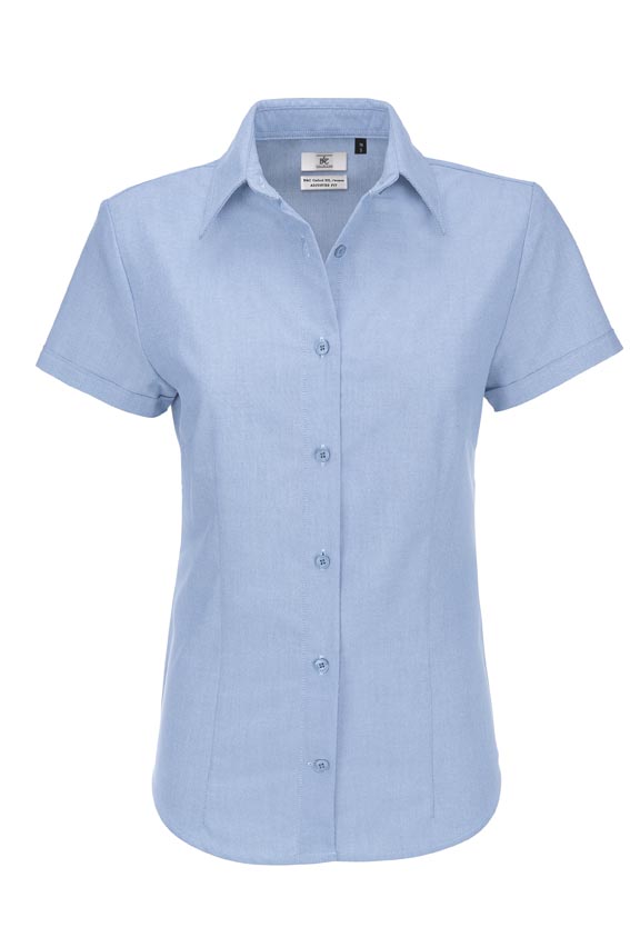 Kortærmet skorte med brystkomme i Oxford kvalitet. Den tilbydes i både dame- og herremodel.
